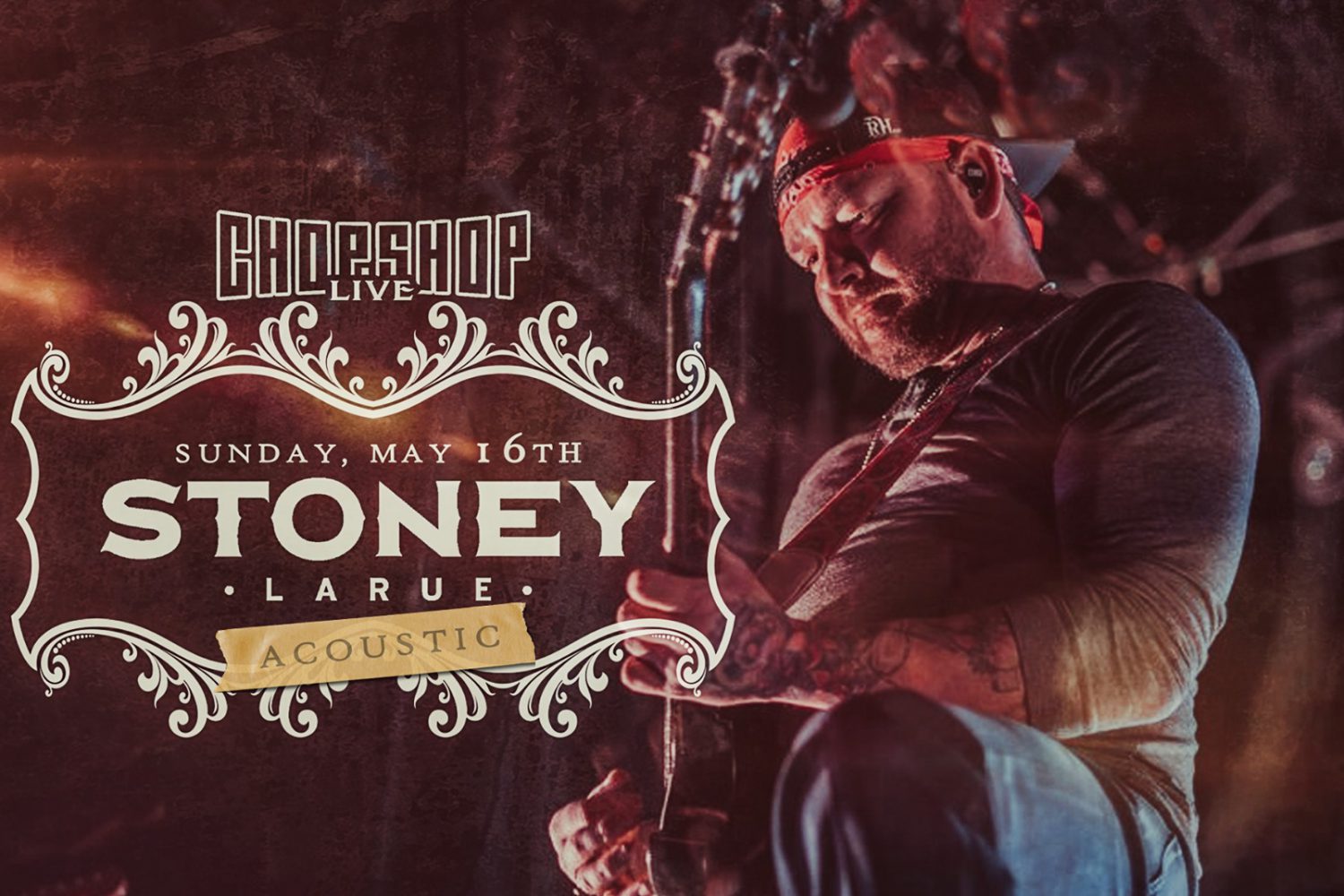 28 Apr 2021 Webmaster News April 28, 2021 Webmaster Stoney LaRue @ Roanoke Chop Shop Live – Acoustic Show Roanoke, TX! Stoney LaRue will performing LIVE in an acoustic performance on May 16th at Roanoke ChopShop Live! Get more information on the event page below, and we will see you there! https://www.facebook.com/events/280072633596345/ #stoneylaure #doublelive25 #acoustic music, Stoney LaRue