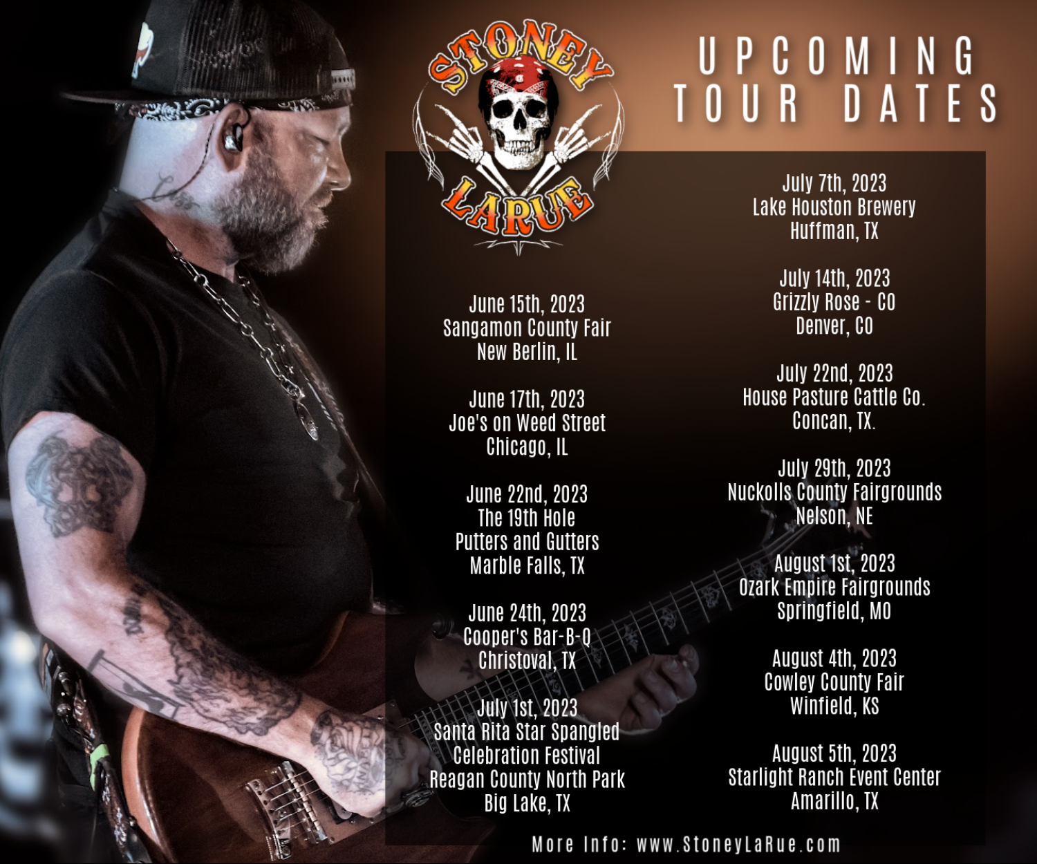 Music, Tour Information 15 Jun 2023 Upcoming Stoney LaRue Tour Dates! Check out these upcoming Stoney LaRue tour dates: June 15th, 2023 Sangamon County Fair New Berlin, IL June 17th, 2023… Webmaster